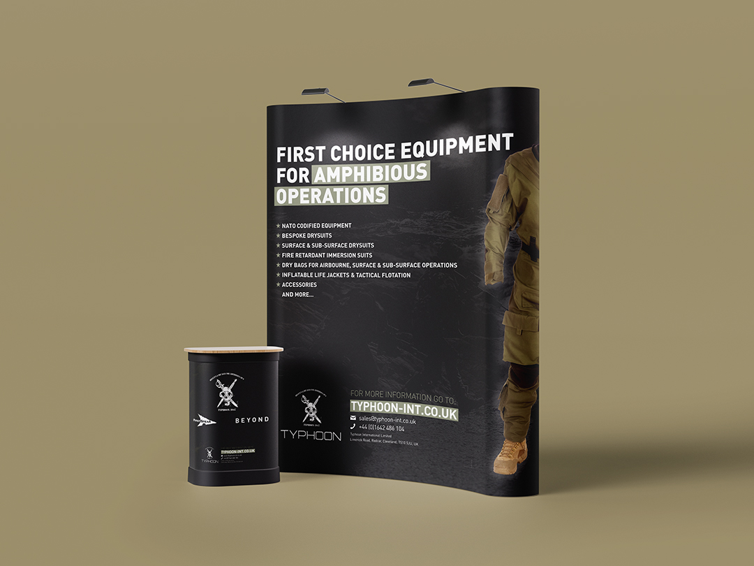 As part of our ongoing creative support to Typhoon we design, artwork and print their military brochures and manage printed marketing materials such as their bespoke product swing tags. We coordinate special finishes such as foil blocking, fluorescent inks and paper over board stocks to their printed products.
